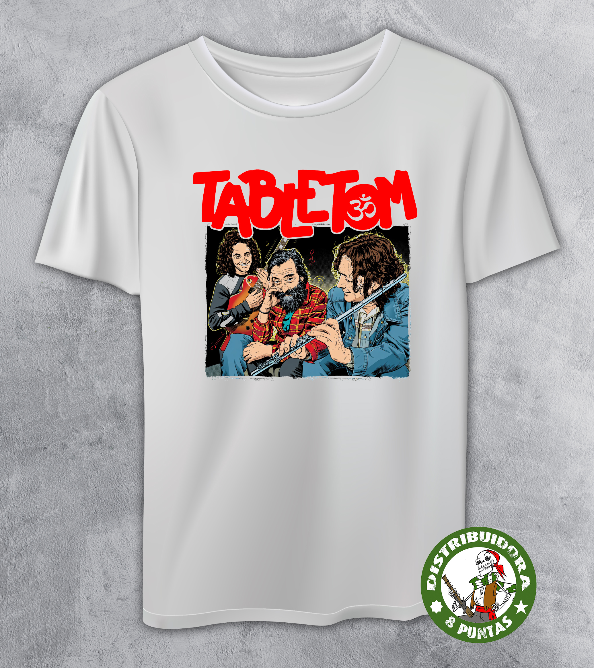 Camiseta de mujer de manga corta. Camiseta andalucista en defensa del rock andaluz, la cultura andaluza contestataria y en concreto del legado del gran grupo musical Tabletom. Disponible solo en blanco. Gramajes: 100% algodón, punto liso, 150 g/m² modelo estándar. 100% algodón, punto liso, 190 g/m² modelo premium.