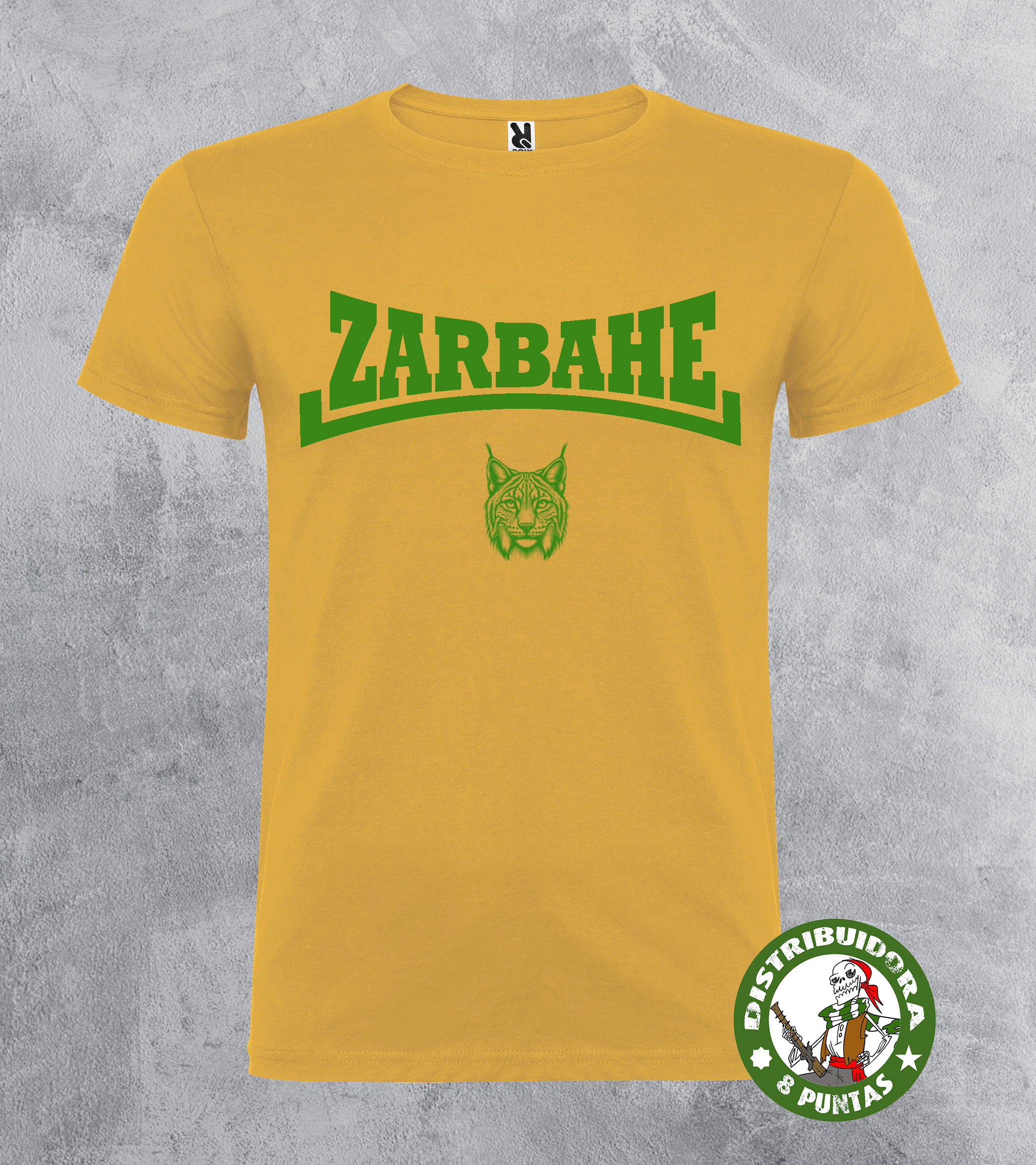 Camiseta unisex de manga corta. Camiseta andalucista y revolucionaria con la palabra en Andalú «Zarbahe» en defensa de nuestra lengua y nuestra forma de ser, rematado con un lince aludiendo a quienes defendemos la tierra, que no somos tantos como quisiéramos. Un guiño a nuestra maltratada fauna también. Un diseño zarbahe, indómito. Disponible en 18 colores diferentes. Tallas 4XL disponible en este modelo en blanco, negro, rojo y verde omeya. Gramajes: 100% algodón, punto liso, 170 g/m² modelo estándar. 100% algodón, punto liso, 190 g/m² modelo premium.